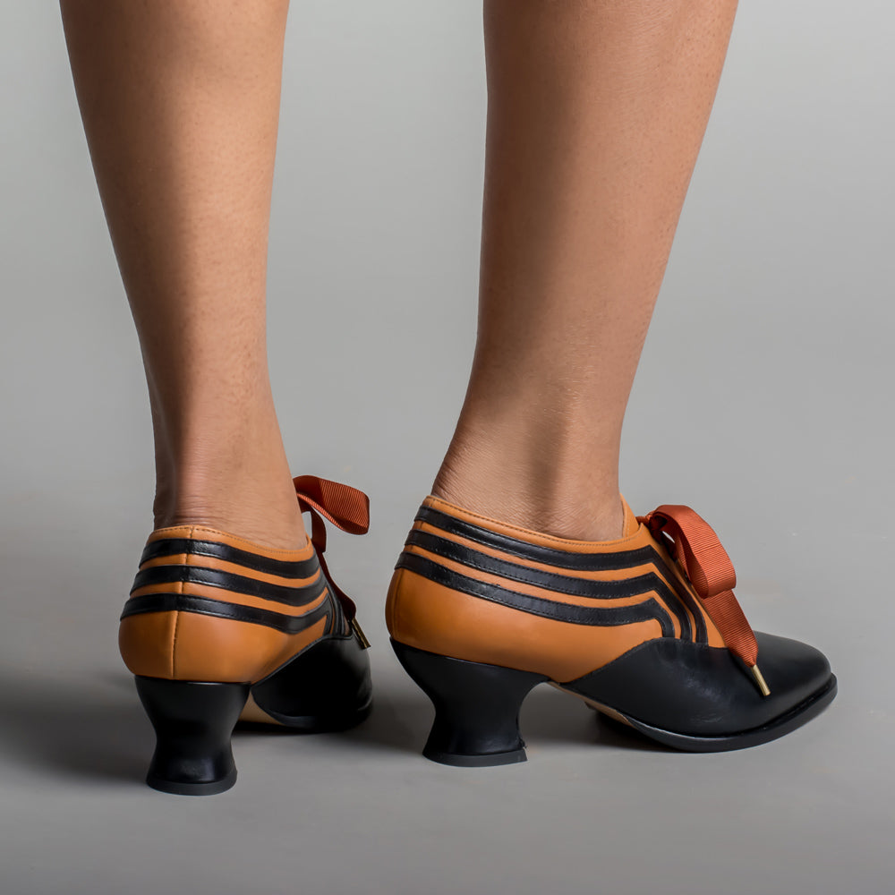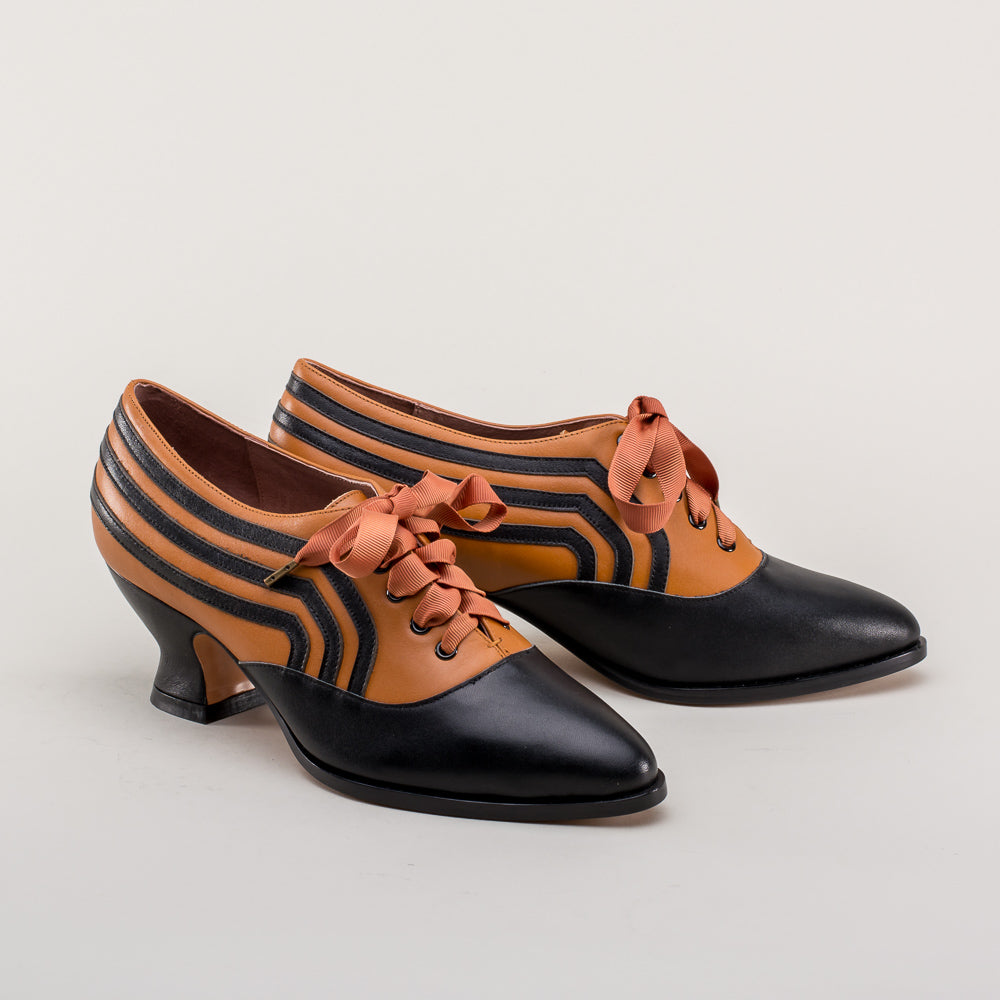 Bernadette Edwardian Oxfords Wide (Cognac/Black)