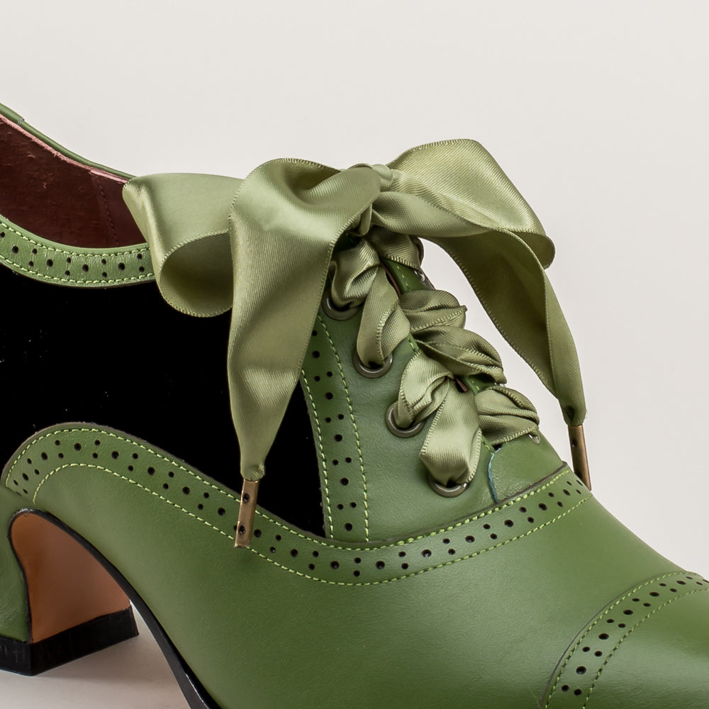 These attractive lace-up shoes have all the style and sass of footwear from c. 1900 through the 1920s and will keep you on your feet and comfortable all day, whether you're attending historical costuming events or walking the streets of New York City. Bernadettes feature our sturdy 2 inch / 5 cm French heel, welted hard-wearing leather soles, pointed toes, and an adjustable lace-up closure, plus all that style with eye-catching contrast stripes on all-leather uppers. Delicious!