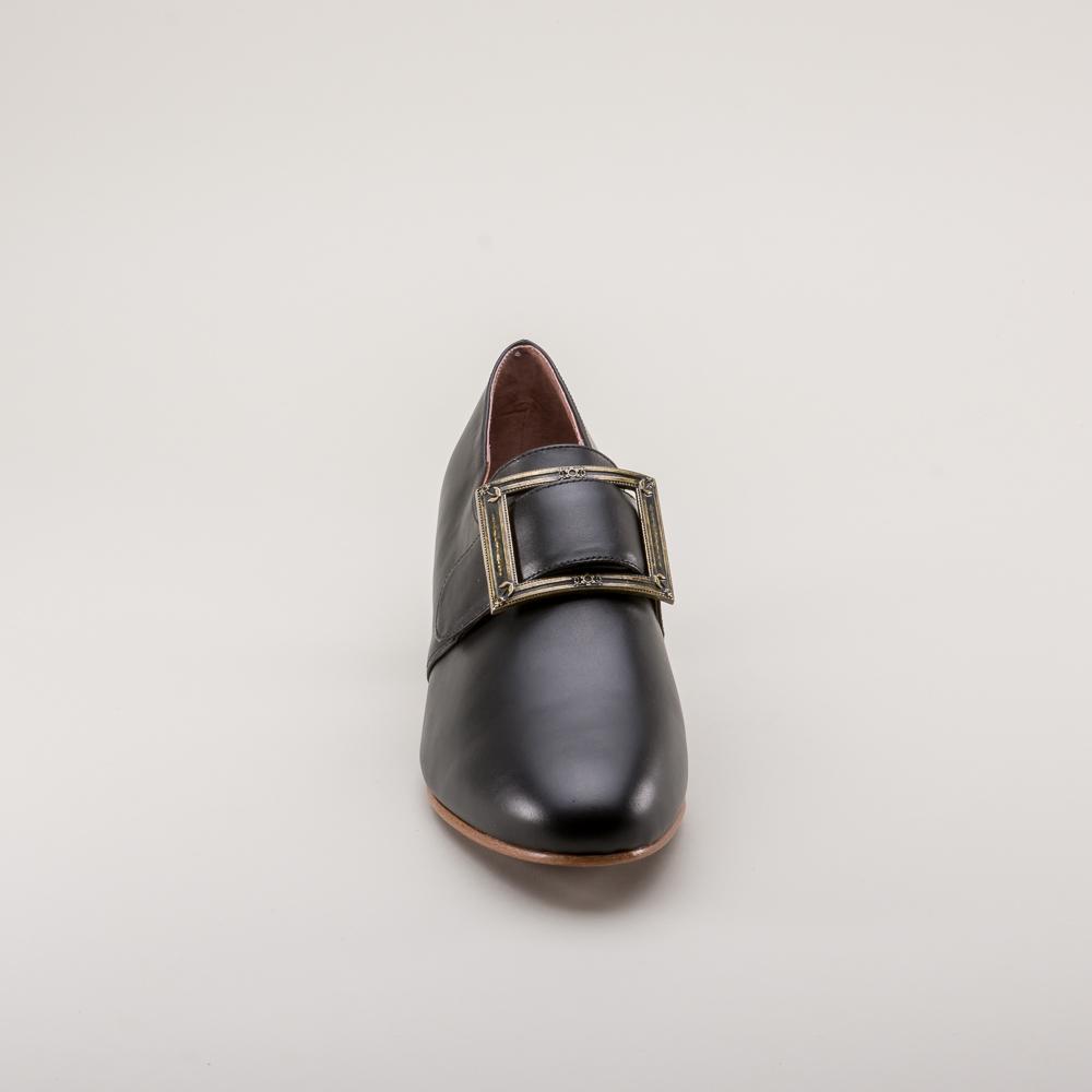 Kensington do not come with buckles, but you can find our 18th-century shoe buckles in the accessories section. Please read our Buckle fitting instructions or watch our shoe buckle fitting video for more information.