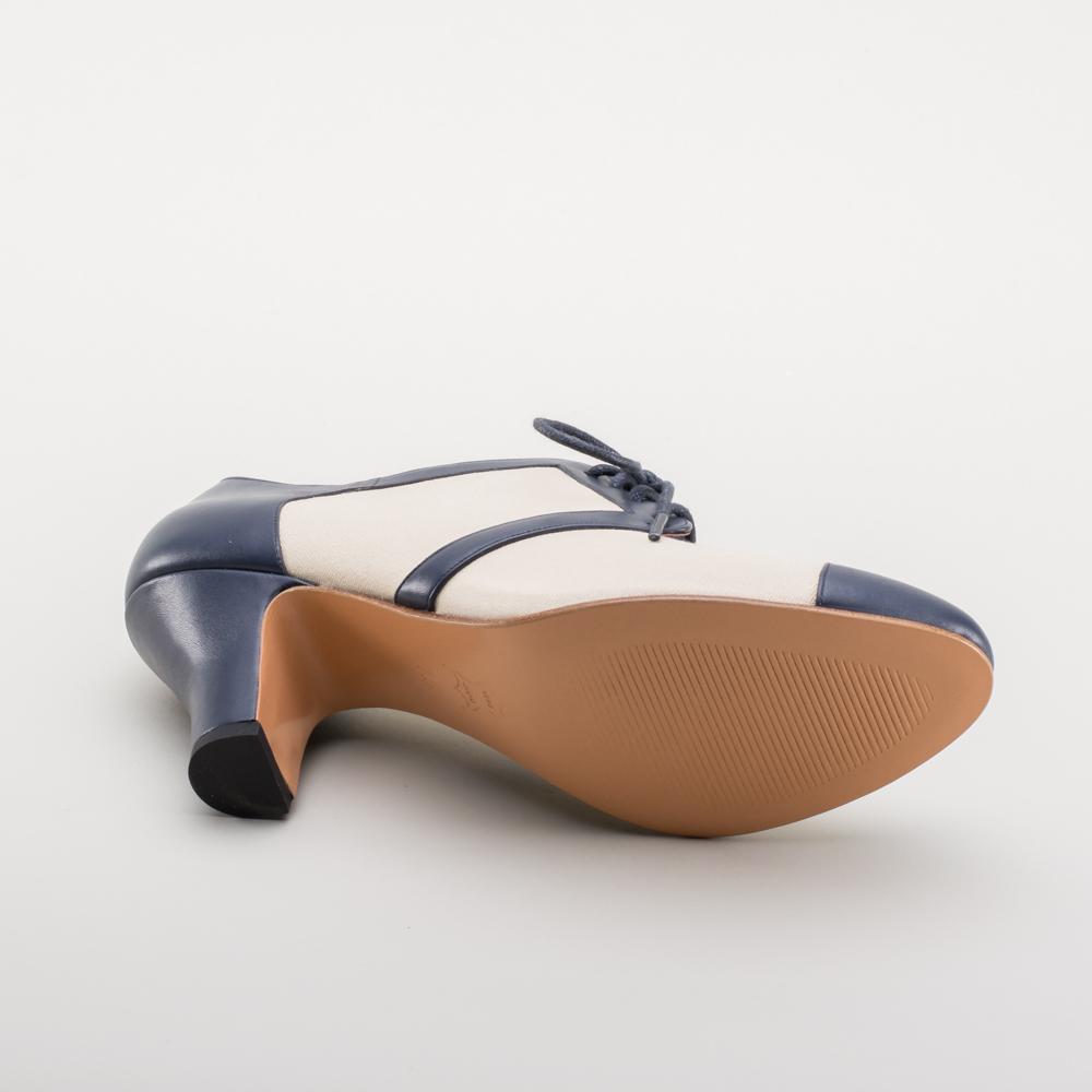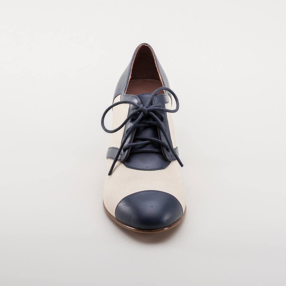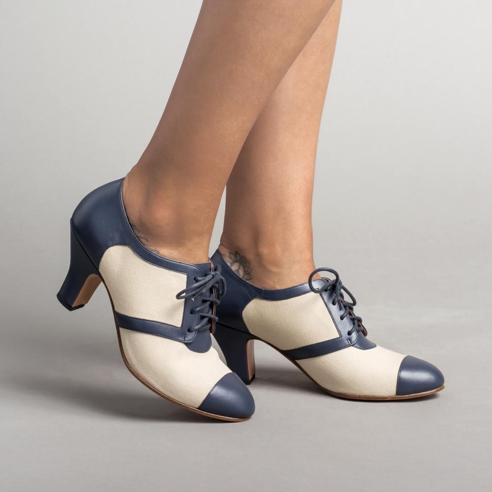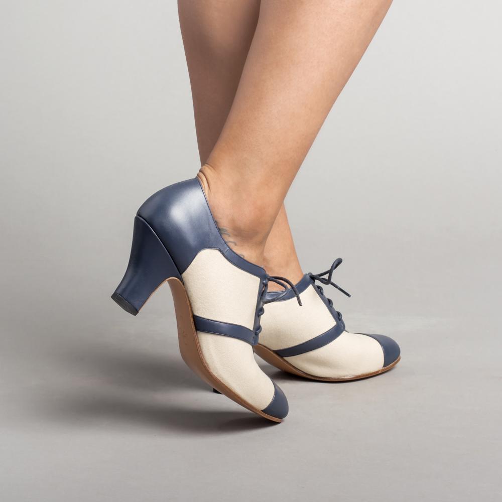 Evelyn's dapper design draws on men's vintage shoes, but combines the masculine motifs with the beautiful arch and toe of a well-heeled lady's oxford. Enjoy Evelyn all Summer and Fall, with true vintage, retro, and modern outfits.